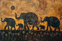 Olifantenfamilie wandeling bij zonsondergang van Art & Soul Creations