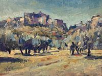 Prachtige aangelegde olijfgaarden steken af tegen de witte rotsformaties. Ik schilderde dit kleine landschapsschilderij als een studie. Nu als reproductie-print op diverse materialen en formaten hier te bestellen bij Werk aan de Muur. Veel plezier.
