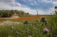 Olijfgaard en wilde bloemen in Spanje van Hennnie Keeris