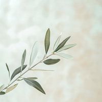 Een delicaat takje ontvouwt zich, de smalle, heldergroene blaadjes dansen zachtjes in het licht. De delicate contouren lijken bijna doorschijnend en stralen een kalme elegantie uit. Op de achtergrond versmelt de zachte textuur met een warm kleurenspel dat doet denken aan een dromerige scène en de band met de natuur weerspiegelt.
