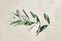 Deze delicate aquarelillustratie van een olijftak brengt natuurlijke schoonheid en elegantie in elke kamer. Met delicate groene bladeren en een minimalistische compositie vangt dit kunstwerk subtiel de essentie van de natuur. Perfect voor moderne woonruimtes, kantoren of als cadeau voor natuur- en kunstliefhebbers. Deze illustratie harmonieert prachtig met andere botanische motieven en creëert een rustgevende sfeer.