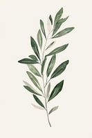 Deze delicate aquarelillustratie van een olijftak brengt natuurlijke schoonheid en elegantie in elke kamer. Met delicate groene bladeren en een minimalistische compositie vangt dit kunstwerk subtiel de essentie van de natuur. Perfect voor moderne woonruimtes, kantoren of als cadeau voor natuur- en kunstliefhebbers. Deze illustratie harmonieert prachtig met andere botanische motieven en creëert een rustgevende sfeer.