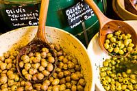 Diverse olijven op een markt in de Provence, Frankrijk.