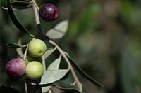 Koop de foto Olijven op een tak van Ulrike Leone op canvas, aluminium dibond, (ingelijste) fotoprint, behang en ArtFrame, op maat geprint in Fine-Art kwaliteit.
