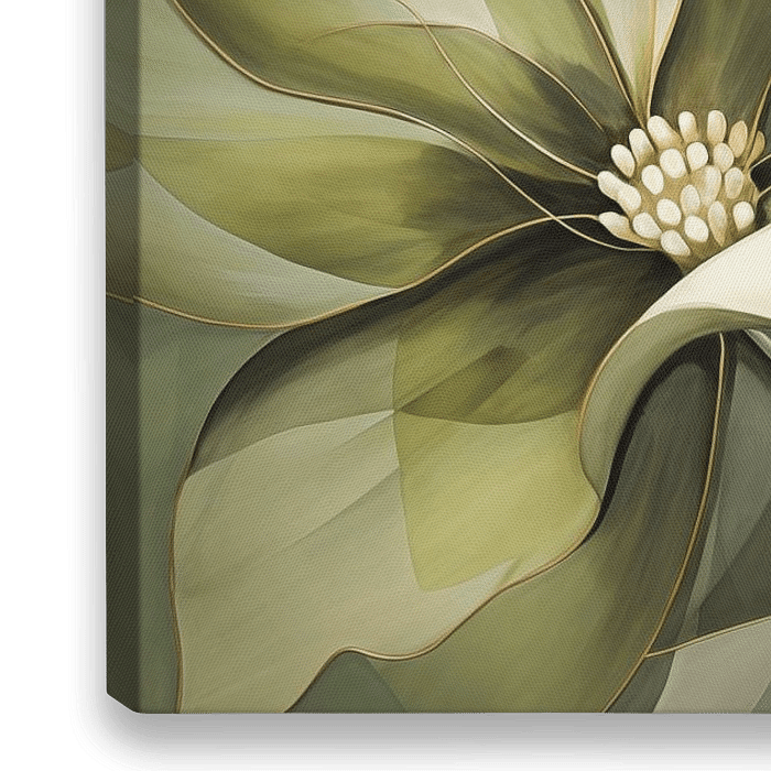 Abstracte lotusbloemen in olijfgroen,crème en goud tinten.