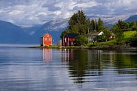 Oma eiland is een kleine eilandje bij het dorp Strandebarm liggend in een rustig stukje van de grote Hardangerfjord. Het is privé eigendom. Jaren geleden was ik dit al eens tegengekomen en had ik de wens het te fotograferen. Mijn eerste pogong was met slecht weer en nu is het eindelijk gelukt om het met mooi namiddag zonlicht te fotograferen. Voor mij is dit heel karakteristiek Noorwegen met de rode schuur en het witte huis, omringd door bergen.