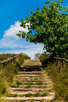 Een trap omhoog, gemaakt van houten balken in Den Treek natuurgebied onder Amersfoort. Voor een relatief natuurlijke trap is deze nog best goed te belopen.
