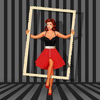 Pin-up girl in Fotorahmungen in stijl retro jaren '50. Schoonheid in een nostalgische fotolijst.