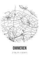 Zwart-witte landkaart, stratenplan of plattegrond van Ommeren. Ommeren is gelegen in de Betuwe, in de gemeente Buren, provincie Gelderland. Op de stadskaart zijn alle openbare wegen in Ommeren opgenomen. Verder is de kaart voorzien van de coördinaten van het centrum van Ommeren.