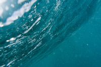 Een omslaande golf op Famara, Lanzarote. Foto genomen van achter de golf. In de Atlantische Oceaan.
