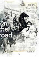 Een handgemaakte collage opgebouwd uit flarden van fashion magazines, auto manuals en dynamische acrylverf strepen en spatten. Samen vormen ze een rijke nieuwe grafische wereld waarin je iedere keer nieuwe details kunt ontdekken.