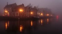 The city of Haarlem in the mist, taken along the Spaarne river at the Vissersbocht