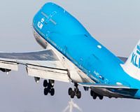 KLM Air France Boeing 747 takes off during freezing cold weather from the Polderbaan at Schiphol airport AMS.