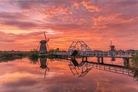 Het beloofde een schitterende zonsondergang te worden. Dus snel mijn spullen gepakt en op pad gegaan. Omdat ik me niet kon voorbereiden, ben ik naar het vertrouwde, maar prakchtige, Kinderdijk (Zuid-Holland, Nederland) gegaan. Een spectaculaire zonsondergang wachtte. Dis is genieten voor een landschapsfotograaf.