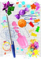 Dit kladblok geeft weer wat je dan deed tijdens lange gesprekken zoals snoepjes eten, nagels lakken, droedels maken, luisteren en antwoord geven natuurlijk.
