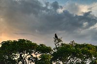 Deze vogel heeft het beste uitzicht, op de top van de hoogste boom. Met uitzicht over het bos.