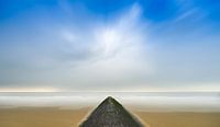 Dit is de Belgische kust in de buurt van Raversijde (Oostende) De foto van de golfbreker heeft een soort van onaardse uitstraling. Deze foto heeft als extra een zoom effect op de lucht en een verloopfilter op de lucht en één op het zand.