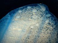 Ofwel: een ijsschotsje op een sloot, in de ochtendschemering, blauwig, fel verlicht en beschaduwd, ergens heen wijzend, vreemd.