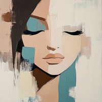 "Onbekende Diepten" nodigt de kijker uit om voorbij de oppervlakken te kijken en te reflecteren op wat er verborgen ligt, zowel in de vrouw zelf als in de kijker. Het werk roept de vraag op: wat gebeurt er in die onbekende diepten van het zelf, die we vaak niet kunnen of willen aanraken, maar die wel de essentie van wie we zijn vormen? Het schilderij suggereert dat er altijd meer is om te ontdekken—zowel in de kunst als in ons eigen bewustzijn. Modern Abstract.