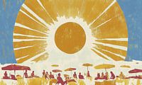 Deze titel roept een zintuiglijke en bijna dromerige ervaring op van een dag aan het strand, badend in intens zonlicht. "Onder de Gouden Stralen" beschrijft niet alleen de fysieke setting – mensen onder parasols, rustend in de zon – maar ook een gevoel van warmte, rust en tijdloosheid. De "gouden stralen" verwijzen naar de zon, maar…