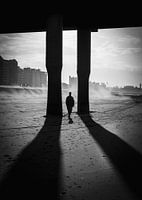 De zon scheen fel boven de Pier terwijl de wind zorgde voor een zanderige storm. Hierdoor kwam er een strakke schaduw op de grond en dat maakte een mooi abstract beeld onder de Pier