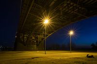 Avondopname van deze wat minder mooie kant van de bekende Waalbrug.