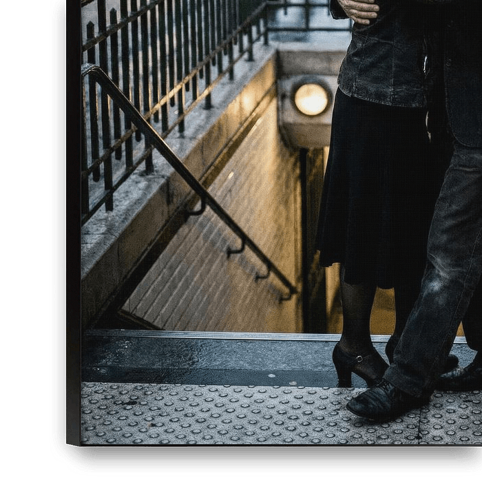 De metro is een teken van beweging, van haast, van doorgaan. Maar hier wordt het een kader voor pauzes. De treden leiden naar beneden, maar de trede blijft…