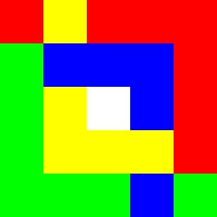 Permutatie met rood, groen, blauw en geel. Midden zwart (D) of wit (W).