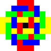 Permutatie met rood, groen, blauw en geel. Midden zwart (D) of wit (W).