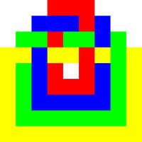 Permutatie met rood, groen, blauw en geel. Midden zwart (D) of wit (W).