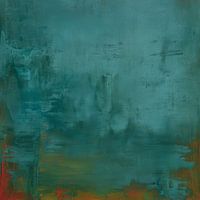 Dit abstracte schilderij straalt een diepe, meditatieve sfeer uit. De dominante kleur is een verzadigde turquoise-blauwgroene tint, die het gehele doek bedekt als een mysterieuze waas. Lichtere en donkerdere variaties in toon creëren subtiele diepte, terwijl zachte penseelstreken en transparante lagen een sfeer van beweging en…