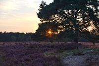 De zon gaat onder boven de heide op Het Groote Zand bij Hooghalen.