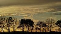 Ondergaande zon boven een Zeeuwse dijk met bomenrij in de herfst