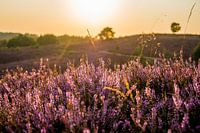 De heide op de Veluwezoom bij Rheden (Posbank) staat in volle bloei. De mooie paarse kleur is goed te zien en steekt mooi af tegen het groen uit de omgeving. Dit trekt jaarlijks duizenden toeristen naar het natuurgebied. De ondergaande zon zorgt voor de romantiek.