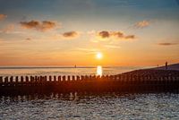 Nog net schijnt de zon over de Westerschelde. De foto is genomen vanaf de loodsensteiger bij het keizersbolwerk in Vlissingen.
