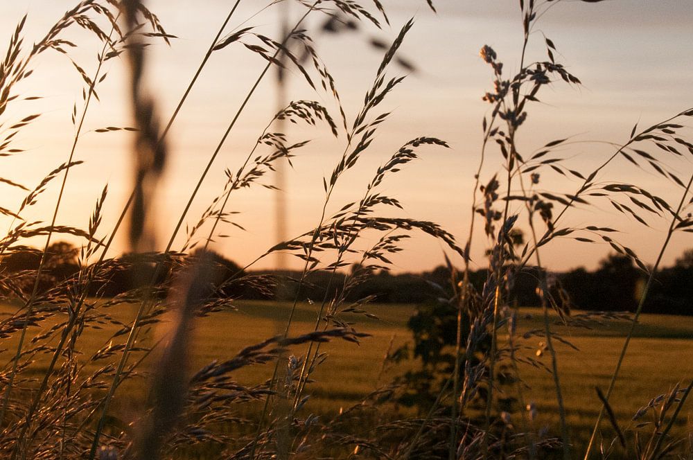 De zon die het gras verlicht.