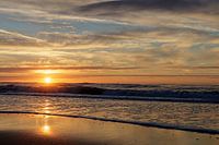 De ondergaande zon, nog enkele blauwe wolken en een Noordzee met zachte golven. De romantiek en rust stralen van de foto af. Proef je de zoute lucht, en voel jij het briesje alweer?