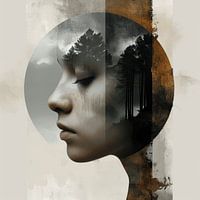 Ondergedompeld in de natuur. Double exposure (dubbele belichting), digital art portret. Een combinatie van een gezicht met een landschap zorgt voor een bijzondere uitsraling.