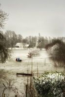 Zondag 7 februari 2021: hoogwater, sneeuw en een hele koude wind bij korenmolen 'De Hoop' in Rijswijk.