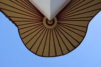 Onderkant van een balkon tegen stralend blauwe lucht van Adri Vollenhouw