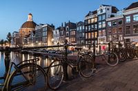 Blauw uur aan het Singel, in de stad Amsterdam