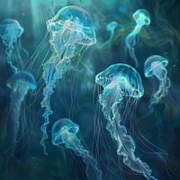 Deze adembenemende afbeelding van een onderwaterwereld met kwallen legt de elegantie en gratie van de zeedieren perfect vast. De fijne details en levendige kleuren van de kwallen creëren een fascinerende en ontspannen sfeer. Perfect voor moderne ruimtes die op zoek zijn naar een inspirerende en rustgevende decoratie.