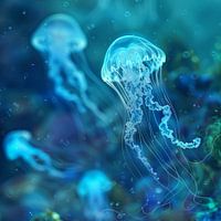 Deze adembenemende afbeelding van een onderwaterwereld met kwallen legt de elegantie en gratie van de zeedieren perfect vast. De fijne details en levendige kleuren van de kwallen creëren een fascinerende en ontspannen sfeer. Perfect voor moderne ruimtes die op zoek zijn naar een inspirerende en rustgevende decoratie.