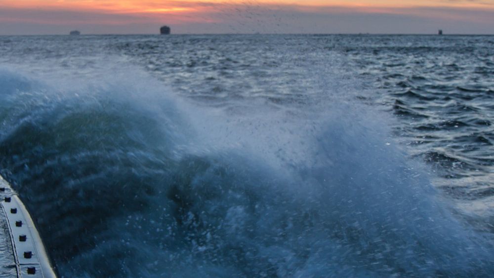 Patrouillevaartuig RPA15 van de Rotterdamse Havenmeester op patrouille in de maasmonding ter hoogte van de Noordzee