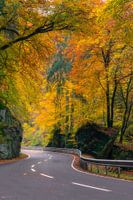 Deze kronkelweg brengt ons bij een prachtig kleur spektakel. Fantastisch om hier te rijden in de herfst maar nog mooier om er wat langer naar te kunnen kijken. Dit kleuren spektakel geeft goed weer hoe mooi het in dit gebied is. Het gebied waar we het over hebben is Mullerthal in Luxemburg, nabij de Perekop.