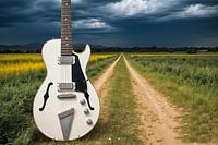 Symbolisch door Ki gegenereerd beeld met een elektrisch giraat en een lang pad in een veld.