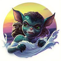 "Mischief of the Tideborn" geeft de speelse trots weer van een mystieke zeegeest gevangen tussen golven en werelden. Met gloeiende groene ogen, glinsterende blauwgroene huid en een ondeugende grijns komt dit hybride wezen tevoorschijn uit de zee bij zonsondergang - half bewaker, half bedrieger. Het werk ademt fantasie,…