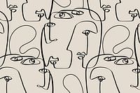 Gezichten in één lijn getekend zonder de pen van het papier te halen. Zwart op een beigekleurige achtergrond. Modern en abstract, ook heel verrassend als behang.