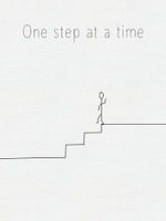 Op dit werk een figuurtje die 1 stap tegelijk zet in het leven. Geen hele grote stappen, elk stapje voorruit…
