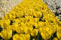 Oneindig veld van tulpen in de Keukenhof, Lisse. De focus ligt op het midden van de gele bloemen om zo een gevoel van diepte te krijgen.